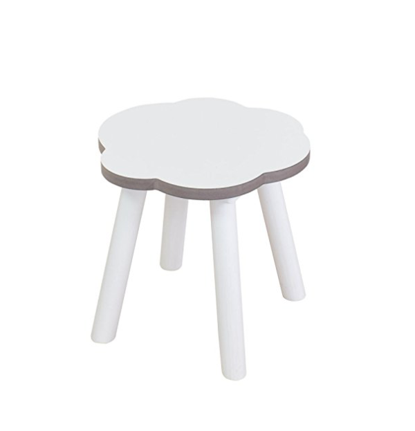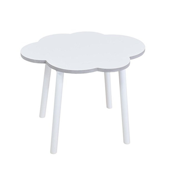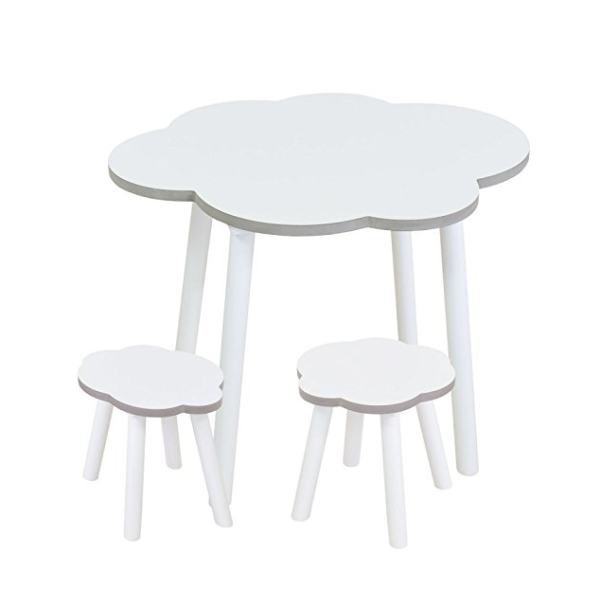 Conjunto de mesa y taburetes de madera para niños y niñas con diseño original en forma de nube blanca de la marca Bainba.