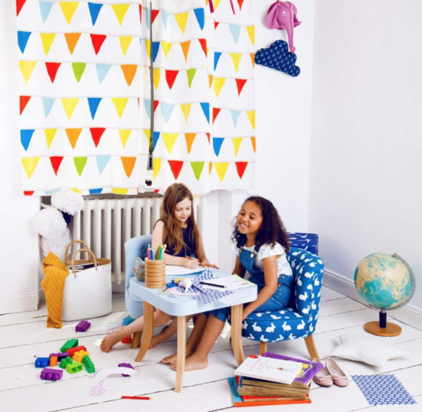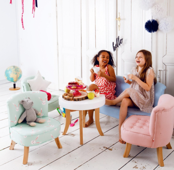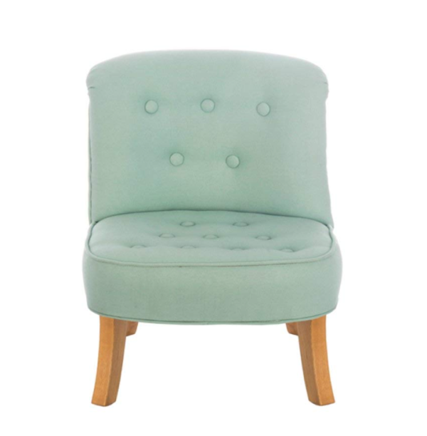 Sillón infantil de madera tapizado en verde turquesa de Somebunny.